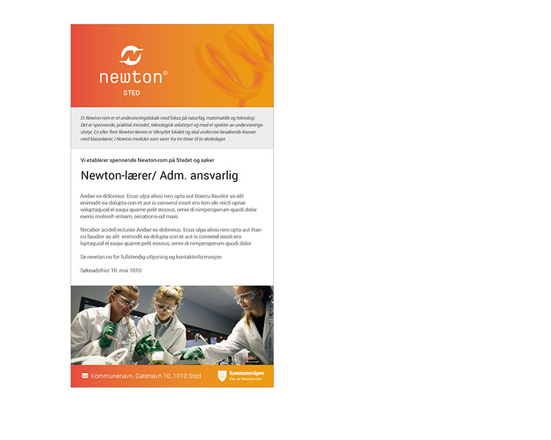 Eksempel på annonse som kan brukes av Newton-rom i ulike faser, eksemplet viser stillingsannonse.