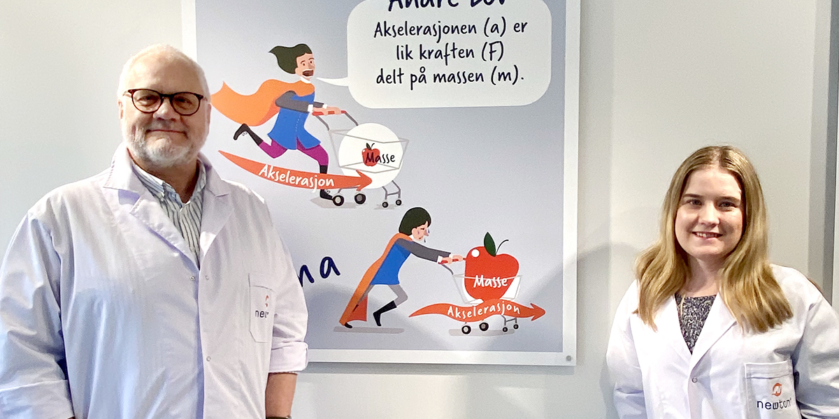 Newton-lærerne Helena Espevik og Matthias Zimmermann gir en orientering om Newton-rommet og Newton-modulene som skal brukes til neste skoleår.