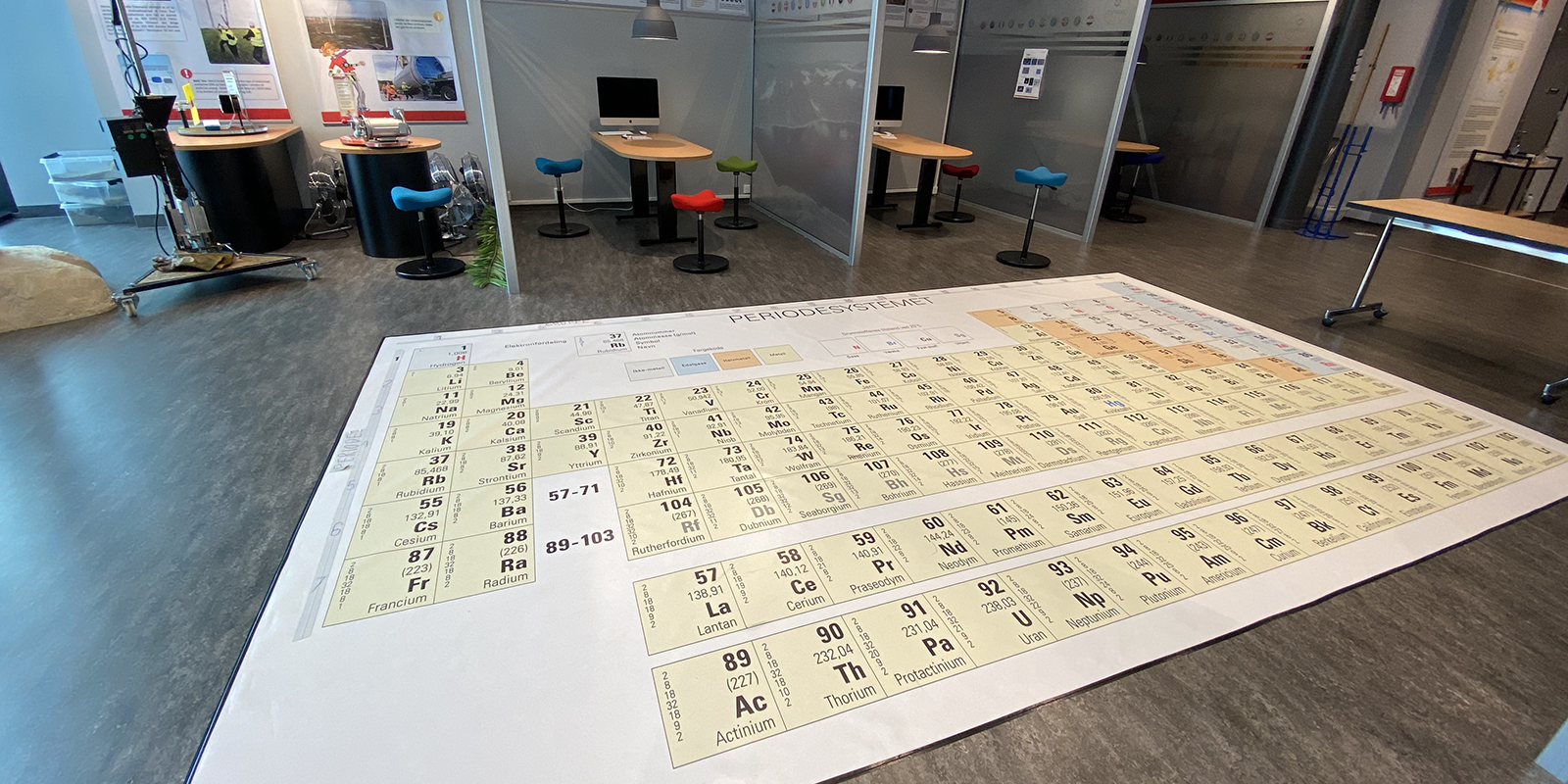 – Jeg ville at elevene skulle kunne gå i et stort periodesystem på gulvet, slik at de enklere kunne få en følelse av hva periodesystemet egentlig er, sier hun. Hun og Newton-kollega Guro har også vært mye i dialog med skolene, og derfra kom et entydig ønske: Kan dere lage noe basert på kjemifaget?